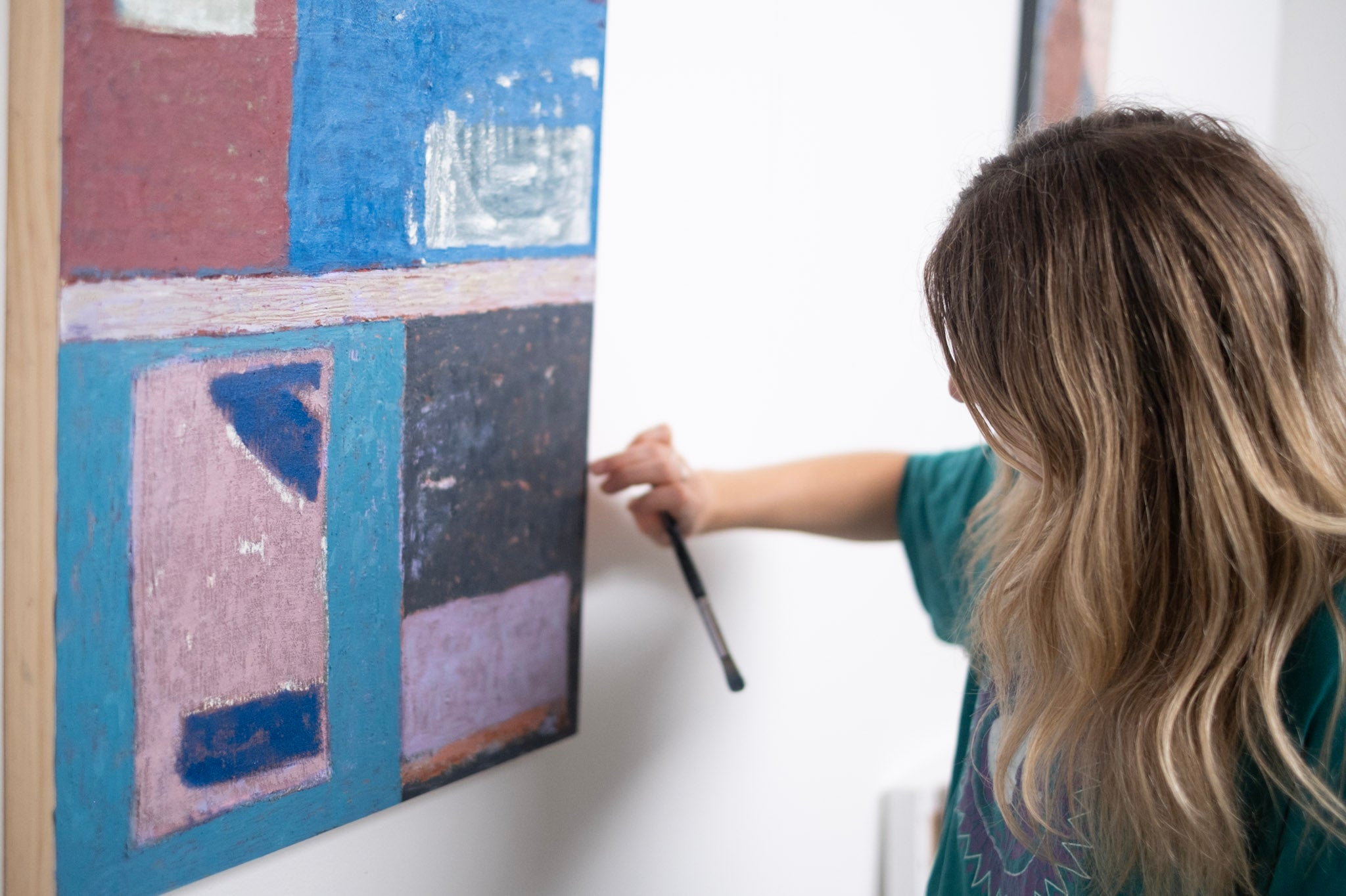Rooted in intuitive feeling and textural exploration, paintings unfold through a slow, layered approach to painting. Tactile mediums such as oil paint, pastels, cold wax, fabric collage, pumice and sand are used to create richly textured pieces.